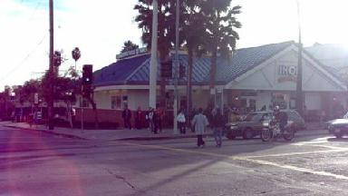 I am ashamed to admit this, but I was about 30-years-old at the time. It took place in West Hollywood, when we lived down in Southern California. If I remember right--which is debatable--the usual group of us girls (Erin and Mary, Jenni and Aimee and myself) took our monthly trip to The Hive's showing to see Erin's art on display. And here's where the shame factors in; while ogling artists, their muses and the musicians, I consumed more than my share of the two-buck chuck they sell in the back ($2 a glass for Charles Shaw. :P) By the time the gaggle of us pulled into the West Hollywood IHOP--am I the only one who thinks an IHOP in West Hollywood seems like an oxymoron?--I was struggling with some really intense inner-ear-induced vertigo. When we were shown to our booth, pancakes and who-knows-what were ordered all around as I sprawled over on my side in the booth, too-buck-fucked to care about the spectacle I was making of myself at 2 am in the morning. I dozed / worked hard not to puke and ruin everyone's fun—and thereby missed the snarky comments from a couple tables over.