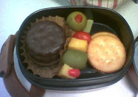 My husband made me a beautiful bento box this morning; especially sweet because he's been so tired. We're doing upkeep on the house; door jams cemented, painting old cupboards, replacing light switches and deck stairs of abnormal dimensions [according to Home De(s)pot. Is 11 x 3 1/4th x 41" really an obscene amount of wood 'in this day and age'?]
