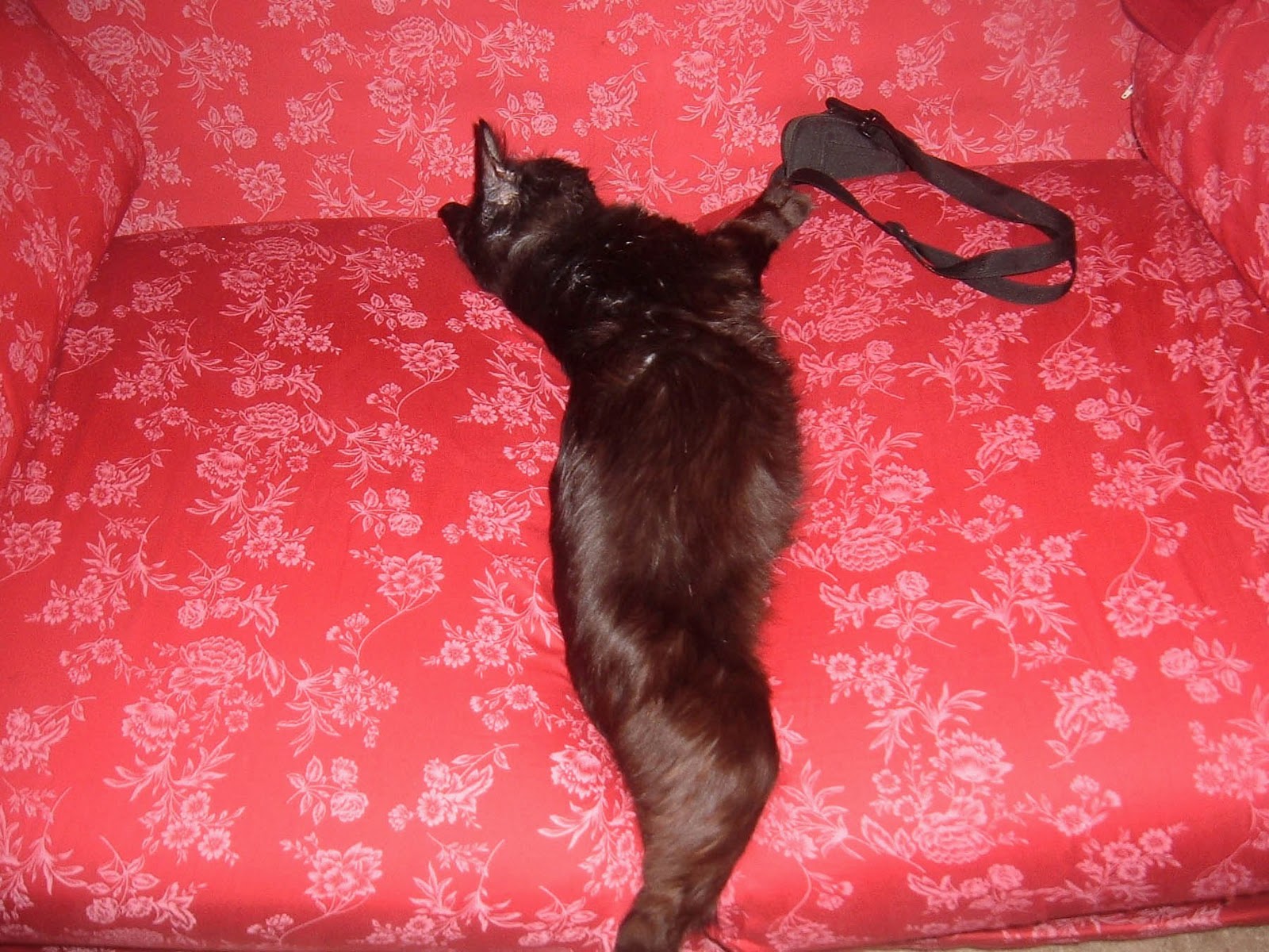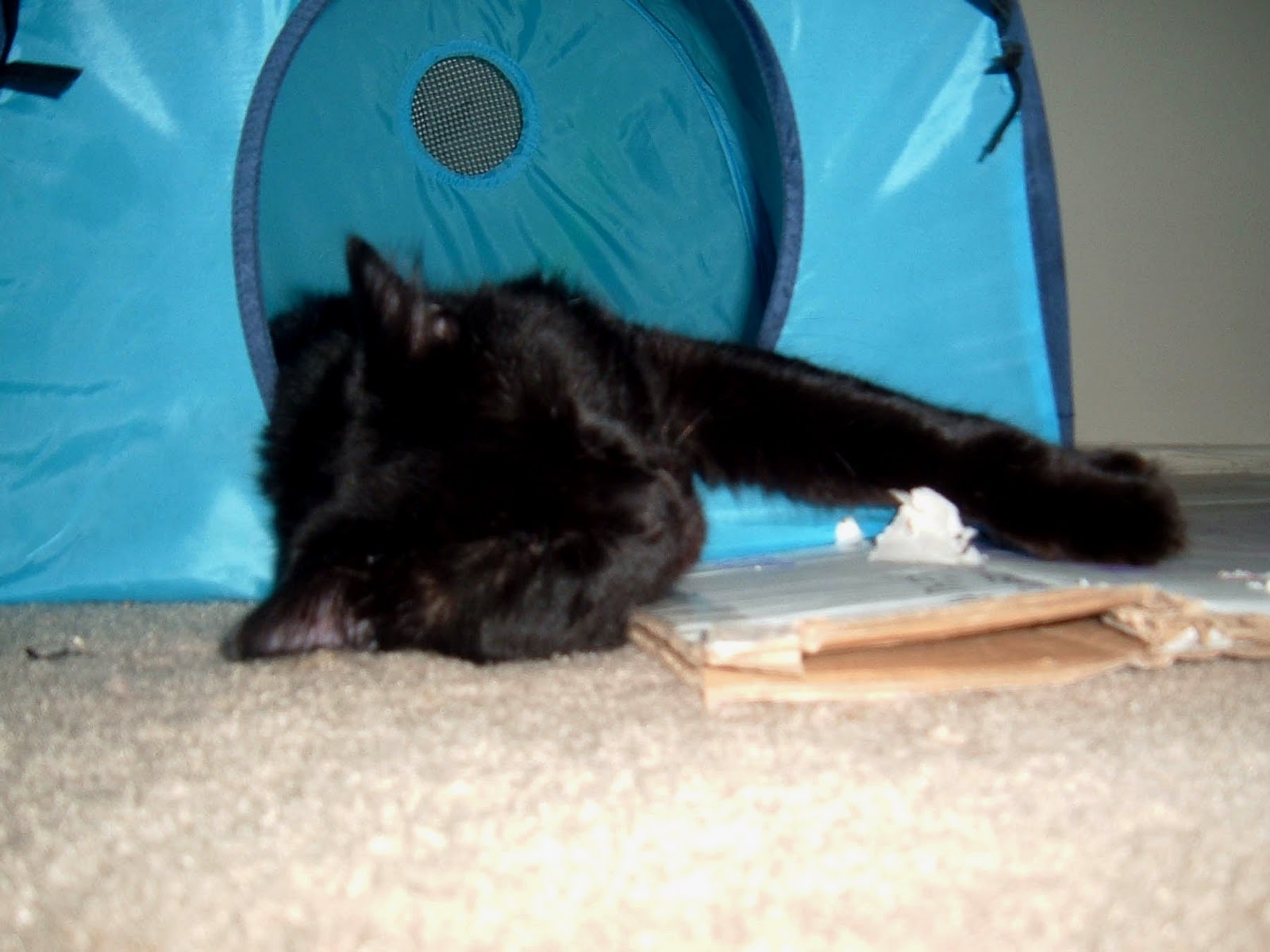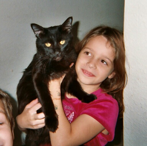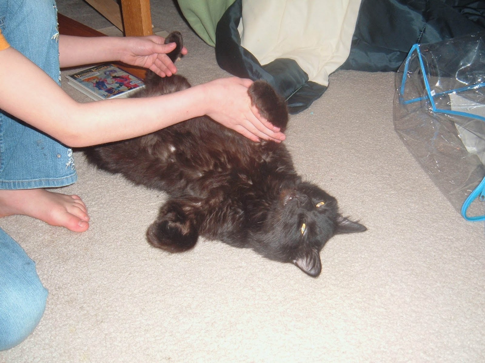 Koomyn came to our house from a box in front of Fred Meyers, a little over ten years ago now. The teenage girl was walking around with him---all alone, the last of his litter---begging everyone she saw to take him home; he was midnight black, and it was the day before Halloween. As silly as it is, since black cats are still sometimes harmed around Halloween by wannabes, I was really worried about him ending up in the wrong hands. Which was as good an excuse as I needed.