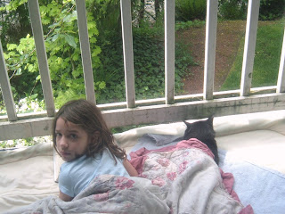 On my chest as I tried to sleep away Saturday morning. My daughter's favorite way to wake me up. |