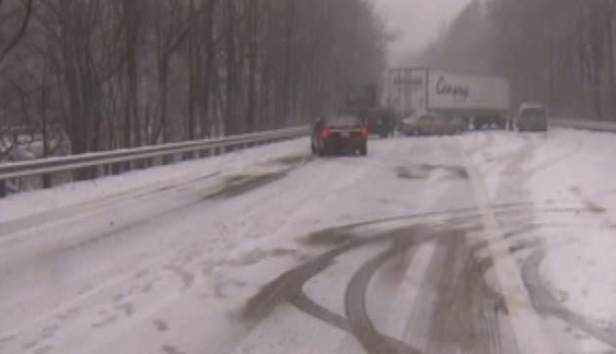 After a short while, it looks like this, only many, many more semis, a lot darker, a little less snow on the road and a lot more snow coming down, faster than you can imagine: