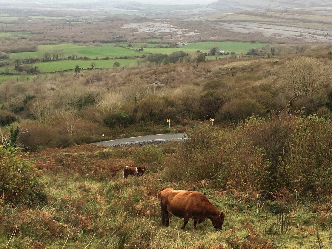 We pulled over to enjoy the view halfway up this hill, and my husband played his new Irish whistle for the cows. |